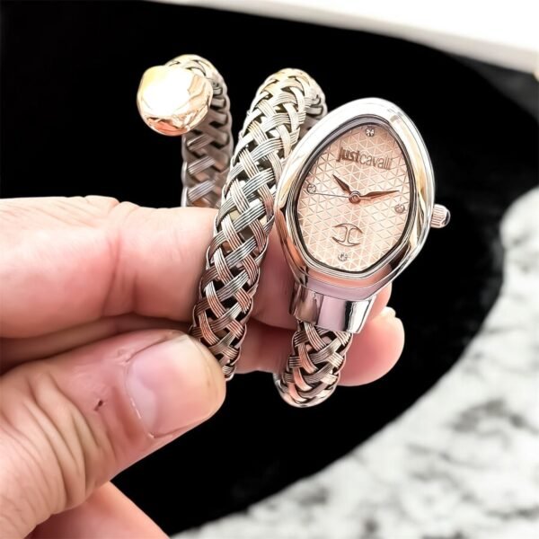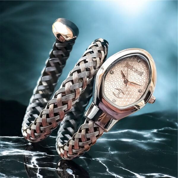 *➡️ Eye-Catching Rosegolf Textured Dial with Just Cavalli Logo*