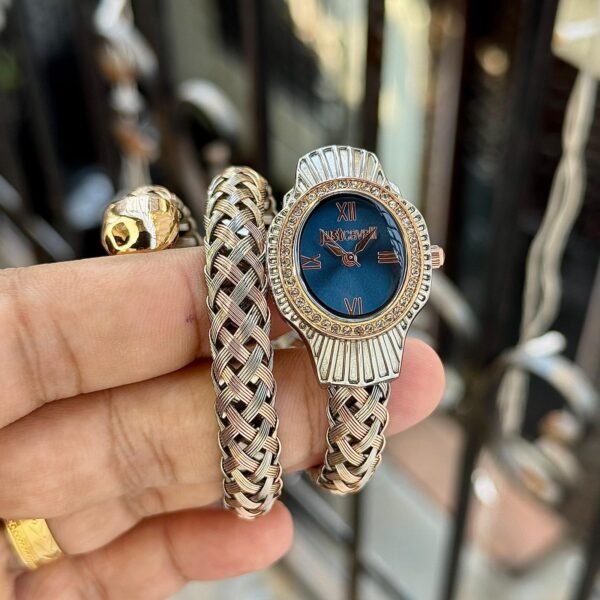 ➡️ Blue Textured Dial with Roman Markers – Chic & Classy Look